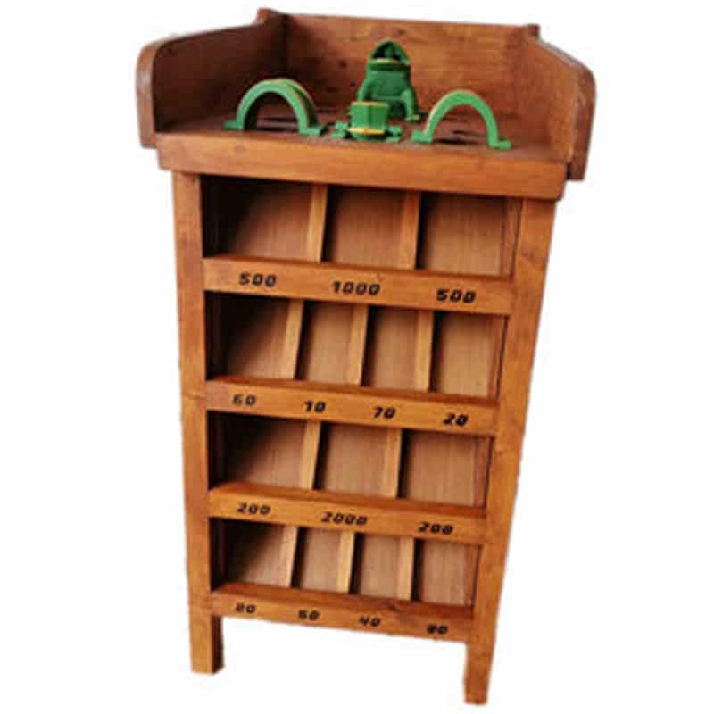 A chaque trou correspond un casier avec un nombre de points. La grenouille aboutissant bien sûr au nombre de points le plus élevé : 2000 points.