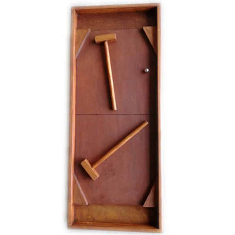 Toutes les boules se jouent en même temps. Chaque joueur place les 6 boules en bois au-dessus de la case de rangement. Le jeu est placé sur une rotule, et en le prenant par sa base, le joueur essaye de diriger les boules dans les trous. Toutes les boules qui tombent dans la partie basse en haut du jeu sont perdues et ne marquent pas de points.